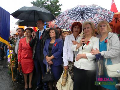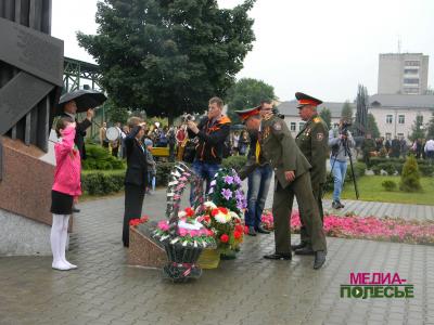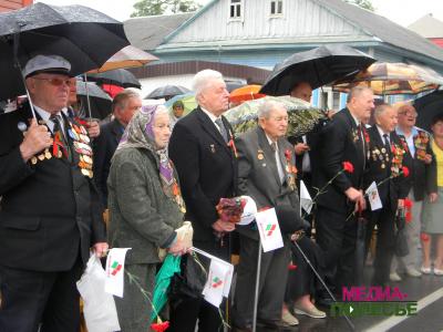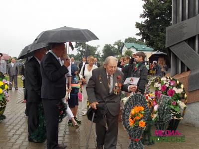 Прозвучал трёхкратный оружейный залп в честь погибших воинов. Представители трудовых коллективов и общественности возложили цветы и венки к обелискам.
