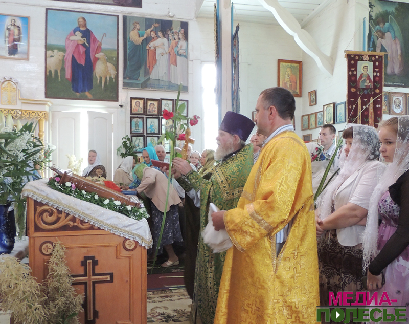 Накануне церковь украсили кленовыми ветками, аиром, цветами.