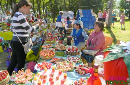 Организованные выставки не могли не удивить участников праздника. В творчестве отразилась королева нынешнего торжества – клубника. Из макарон, из ткани, бисера и, естественно, была представлена свежая, с грядки, ягода.