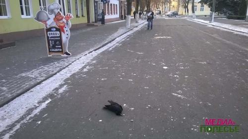 Сотрудник одной из организаций, офис которой находится на улице Ленина, рассказал Медиа-Полесью, что вороны неожиданно падают с деревьев на землю и несколько минут бьются в конвульсиях. Так они могут пролежать целый день, и только утром дворники собирают птиц в кучки под деревья, чтобы, видимо, потом вывезти.