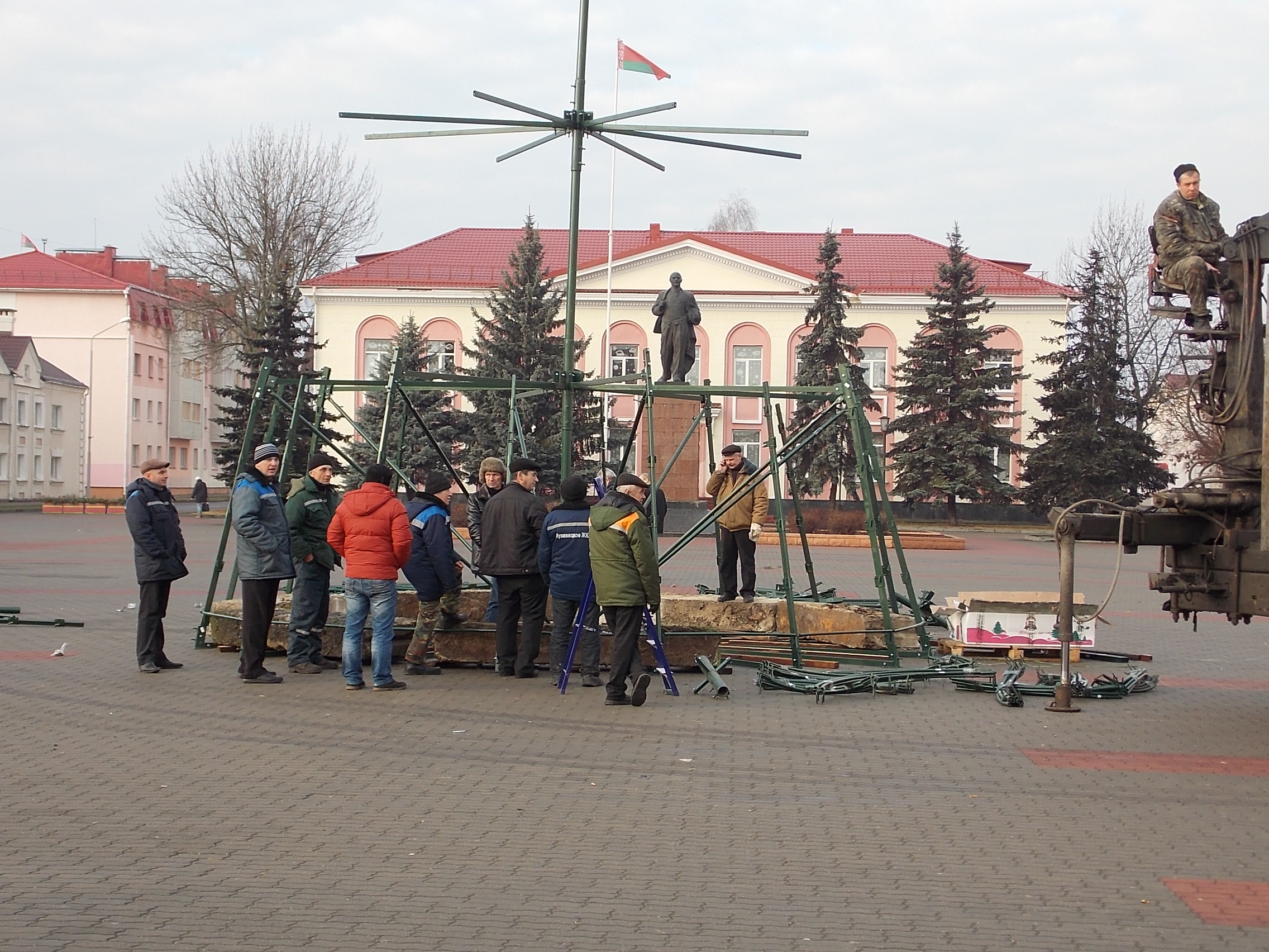 К монтажу каркаса коммунальники приступили 15 декабря. Как рассказали работники службы, у основания каркас закрепляется блоками, общий вес которых 6 тонн.