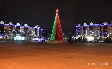 В Пинске главная новогодняя ёлка светится цветами государственного флага