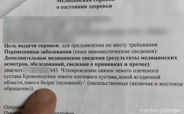 Медицинская справка пинчанки после «джентельменских» поступков ОМОНА
