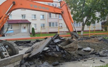 В центре Лунинца огромный котлован на месте асфальта