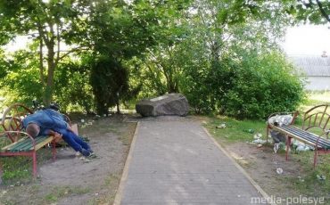 Сквер в Лунине: поваленный знак, мусор и «бомонд» на скамейках