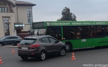 Рейсовый автобус и легковушка столкнулись в центре Пинска