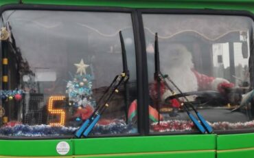 Автобус с Дедом Морозом за рулём курсирует по Пинску