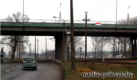 У Пінску на масту ў раёне рынка «Сонечны» вывесілі бел-чырвона-белы сцяг