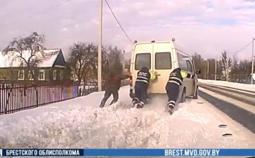 В Столинском районе сотрудники ДПС вручную вытолкали микроавтобус на дорогу