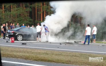 ДТП на М1 возле Барановичей. Одна машина загорелась, вторая в кювете