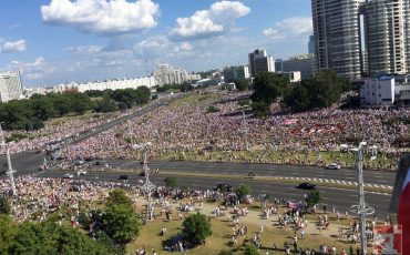 Не менее 200 тысяч человек уже собралось у стелы на пр. Победителей в Минске