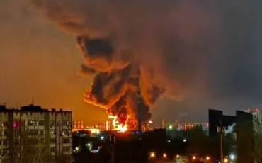 В Энгельсе Саратовской области после атаки беспилотников произошёл сильный пожар