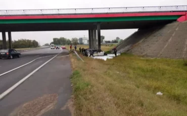 Под Минском автомобиль врезался в опору моста и загорелся. Водитель погиб