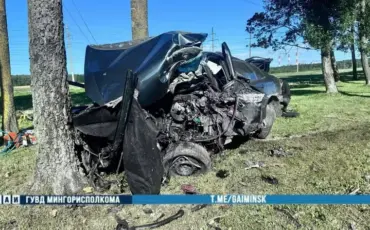 На Микашевичской трассе грузовик врезался в микроавтобус с пассажирами и перевернулся