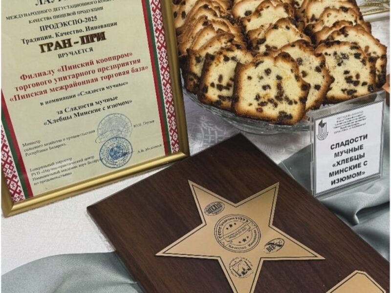 Филиал «Пинский кооппром» ТУП «Пинская межрайонная торговая база» завоевал престижные награды в международном дегустационном конкурсе качества пищевой продукции PRODEXPO-2025 «Традиции. Качество. Инновации».