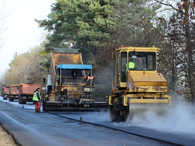 Новый асфальт укладывается на автодороге Молотковичи – Тепенец.
