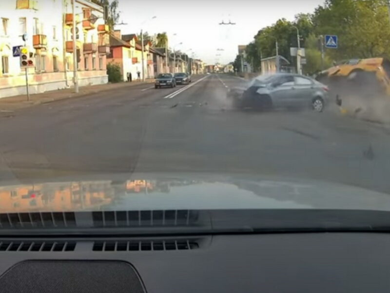 Жесткое ДТП в Минске: автомобиль службы газа перевернулся после столкновения