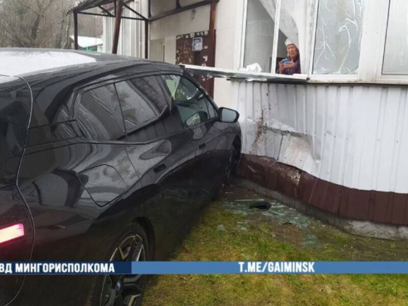 В воскресенье в обеденное время 46-летняя водитель автомобиля «BMW» въехала в подъезд дома по улице Кольцова в Минске.