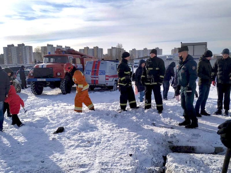 В «Западном» микрорайоне Пинска под плитами оказались щенки. Горожане пытаются их спасти.