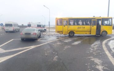 Школьный автобус столкнулся с Audi на трассе Минск-Микашевичи