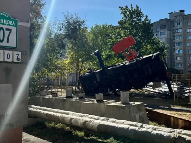 В Минске перевернулся автокран, повреждены автомобили