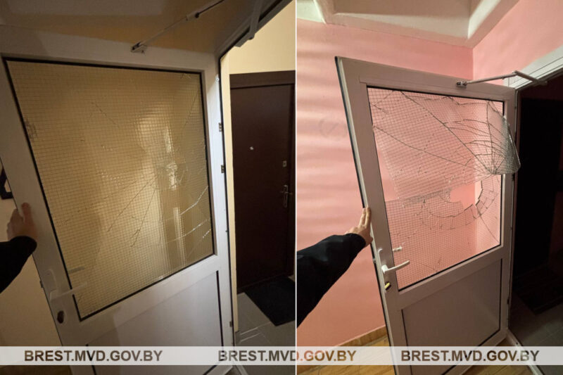 В дежурную часть Пинского ГОВД поступил звонок от местного жителя о том, что неизвестный беспричинно, из хулиганских побуждений, разбил стекло в тамбурной двери многоэтажного дома.