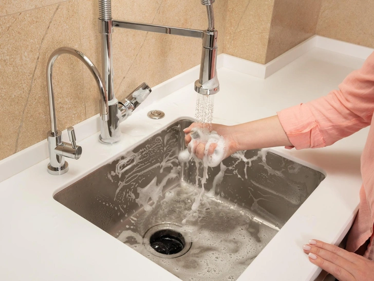 Помыть посуду по завершении тяжелого дня просто необходимо, но еще более важно — не оставить за собой грязную раковину. Наравне с унитазом, раковина считается одним из самых грязных мест в доме из-за огромного скопления невидимых человеческому глазу бактерий, поэтому следует позаботиться о ее чистоте, предварительно убрав все остатки пищи. Используйте специальное чистящее средство, которое можно вспенить вместе с жидкостью для мытья посуды, и оставьте его в растертом виде на пару минут, прежде чем сполоснуть раковину и вытереть ее досуха