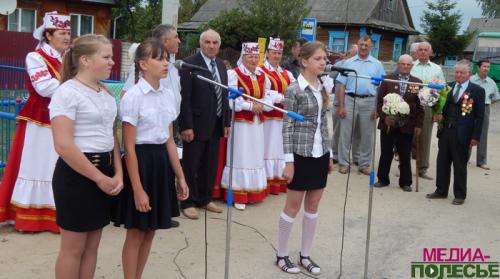 В Дятловичах возле обелиска гостей встретили председатель сельсовета Константин Андреевич Мордухай и самодеятельные артисты.
