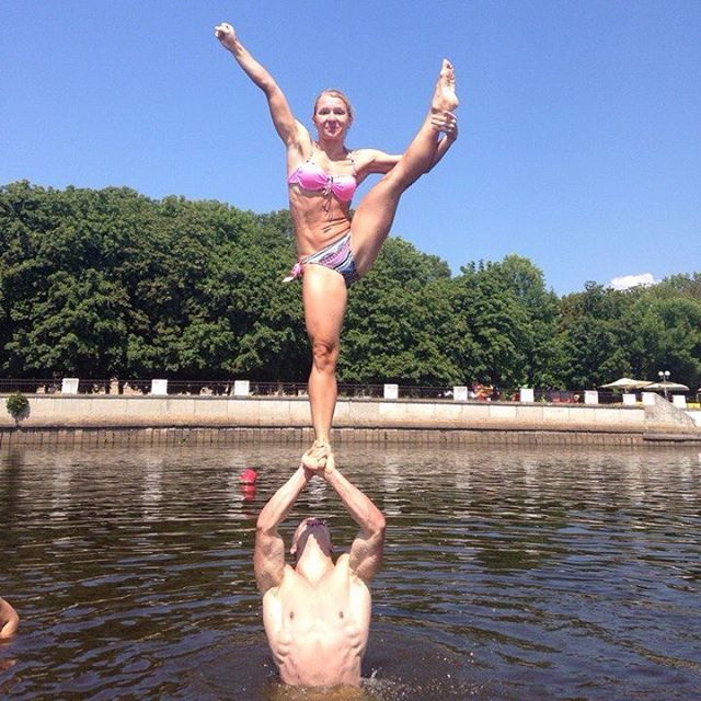Во время отдыха минчане строили акробатические пирамиды на местном пляже.