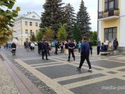 На улице Ленина собрались пинчане. Скандируют "Жыве Беларусь!", "Я гуляю!".