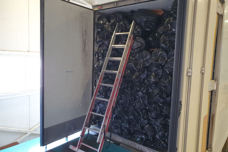 Таможенники просканировали автомобиль. Выснилось, что за упаковки волокна в машине были спрятаны коробки с сигаретами. Было изъято 967 тысяч пачек сигарет с белорусскими акцизными марками.