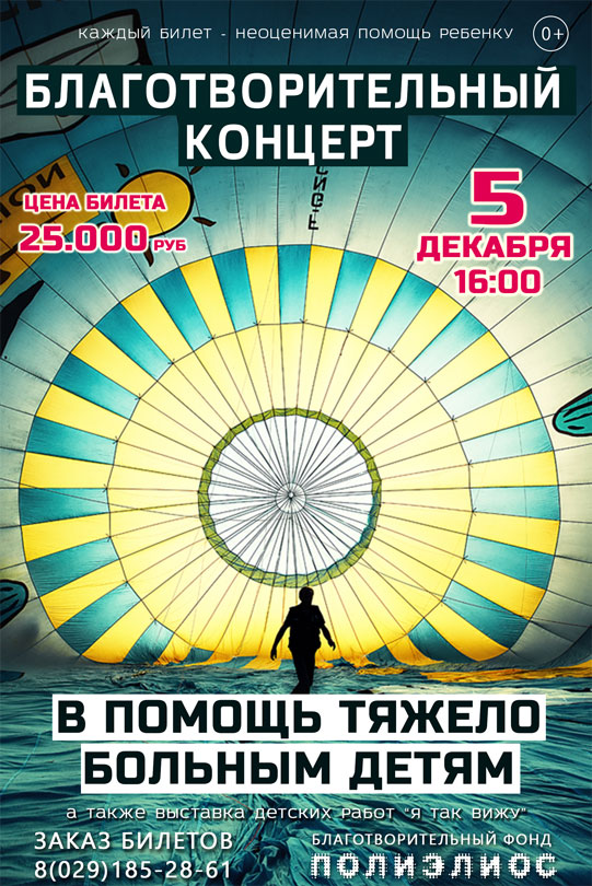 — Мероприятие проводится совместно с Пинским горисполкомом и направлено на сбор помощи тяжело больным детям. В программе предусмотрено выступление детских коллективов народного творчества и известных пинских исполнителей Натальи и Дениса Голубевых. Вход на концерт будет осуществляться по билетам стоимостью 25 тысяч рублей. Все деньги, вырученные от реализации билетов, пойдут на нужды детей-инвалидов.