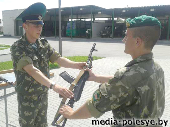 Открылся торжественный ритуал поднятием Государственного флага Республики Беларусь на строевом плацу отдела пограничной службы «Речица». К собравшимся обратился начальник отдела подполковник Виталий Александрович Данильченко: «Органы пограничной службы всегда были сильны традициями. В жизни пограничников будет много ритуалов. Вручение оружия – одно из первых и самых важных событий, которое остаётся в памяти навсегда. Важно, чтобы Вы помнили: оружие всегда применяется только для защиты Отечества! И пусть оно пригодится Вам только на стрельбах и учениях!»