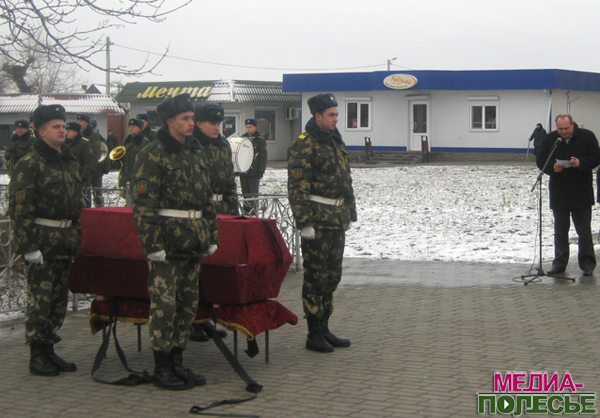 Отец Валерий, настоятель храма во имя св. ап. Иоанна-Богослова, что в Семигостичах, отслужил молебен о погибших воинах. После чего был осуществлён перенос урны с прахом к братской могиле. Под звуки духового оркестра из Пинска и троекратного оружейного залпа урна с останками воинов была опущена к братской могиле.