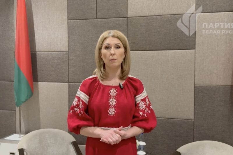 Председатель пролукашенковской партии «Белая Русь» Ольга Чемоданова во главе белорусской делегации отправилась наблюдать за третьим этапом всеобщих выборов в Мьянме. Во время встреч она надевала красно-белое платье с беларусской традиционной вышивкой.