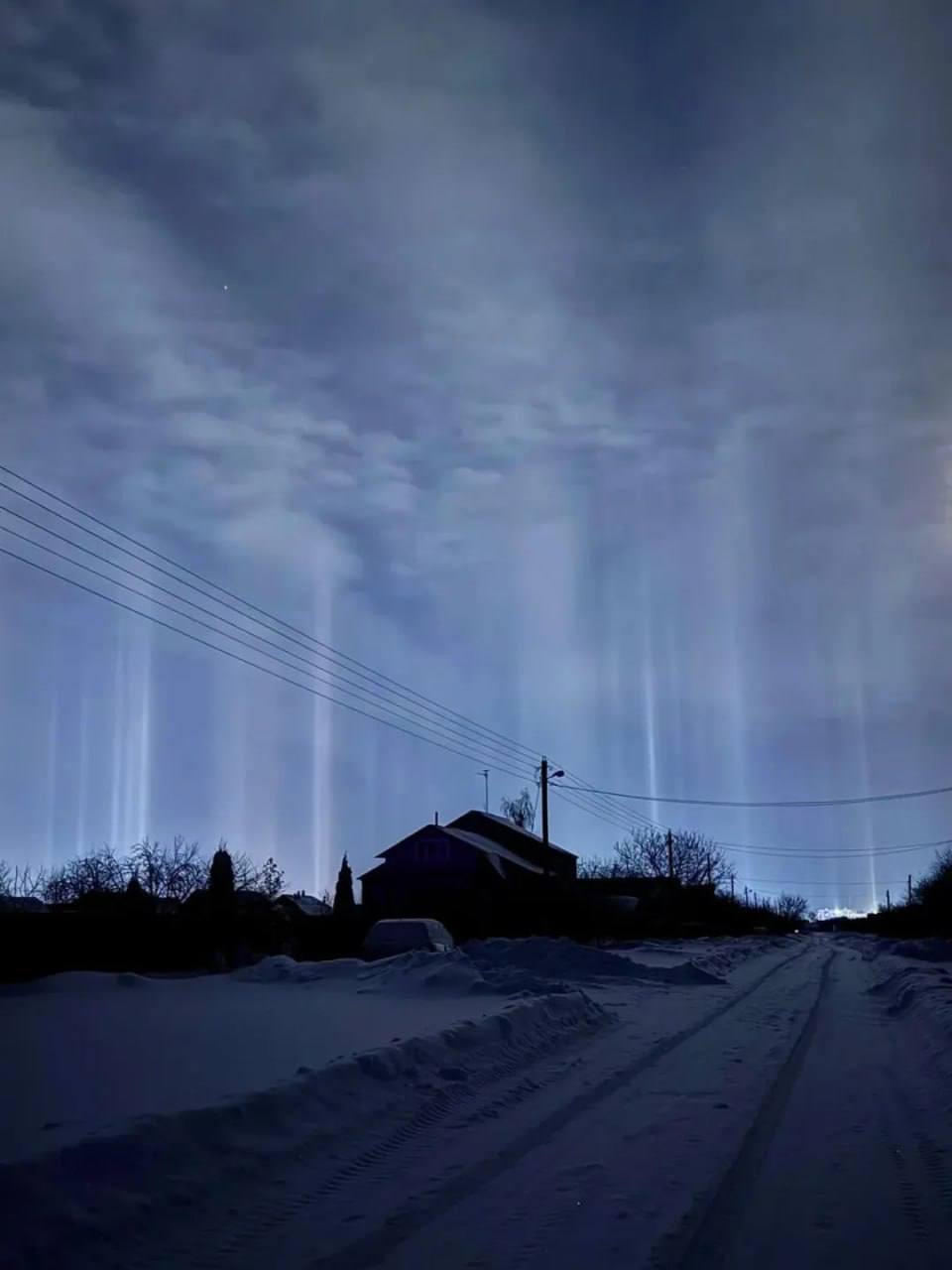 Кристаллы льда, как маленькие зеркала, отражают свет уличных фонарей, окон или закатного солнца, создавая эффект сияющих колонн, пишут пользователи в соцсетях.