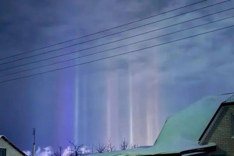 Кристаллы льда, как маленькие зеркала, отражают свет уличных фонарей, окон или закатного солнца, создавая эффект сияющих колонн, пишут пользователи в соцсетях.