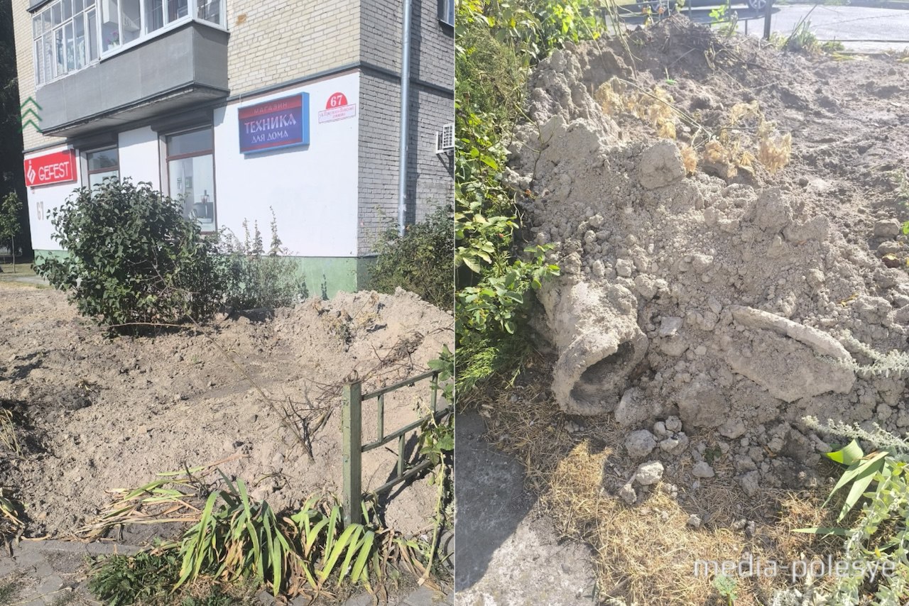 В Пинске, после проведения работ по замене труб у дома №67 по улице Иркутско-Пинской дивизии, двор остался раскопанным, ходить по территории небезопасно.