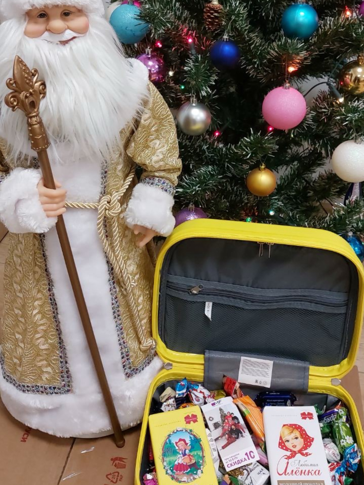 В ярких жёлтых чемоданчиках от «Коммунарки» – по 1,5 кг сладостей для детей работников предприятия в возрасте до 14 лет.
