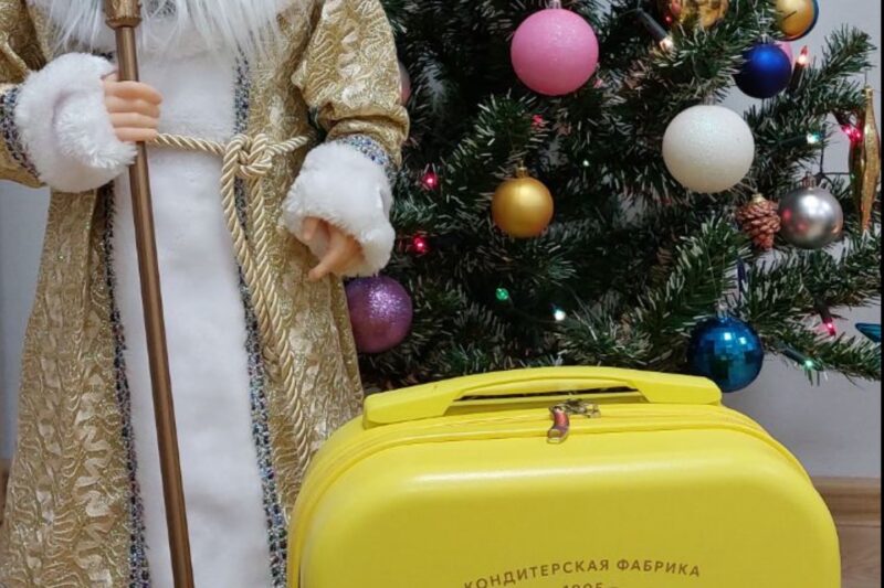 В ярких жёлтых чемоданчиках от «Коммунарки» – по 1,5 кг сладостей для детей работников предприятия в возрасте до 14 лет.