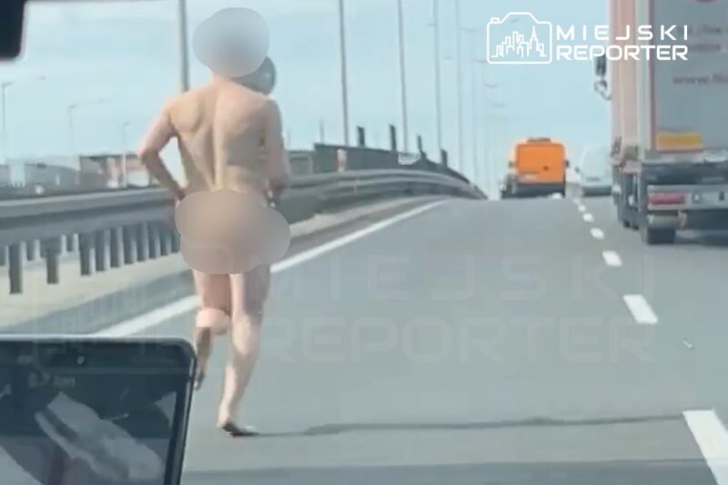 После этого мужчина покинул свою машину, зацепился за грузовик в районе улицы Łabiszyńskiej и продолжил поездку на нём до Marywilska, где полностью разделся. Затем он подбежал к автомобилю Nissan, разбил в нём стекло и запрыгнул на крышу Renault, на котором доехал до района улицы Modlińskiej.