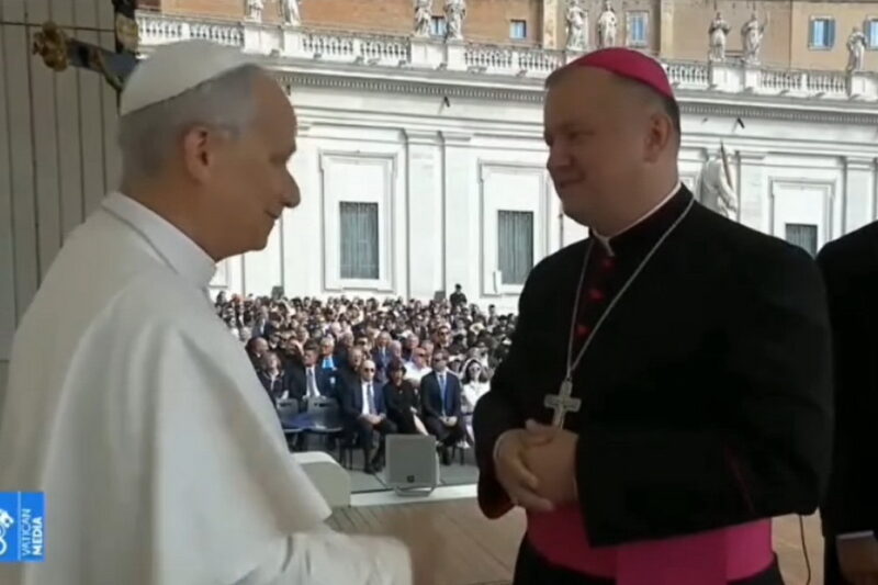 «Ваше Святейшество, позвольте мне пригласить Вас в Беларусь. Наш Костел мечтает и молится, чтобы Ваш визит в нашу страну стал возможным. Мы все устали от войны между нашими соседями, а Ваш приезд в Беларусь будет знаком спокойствия и надежды. Пусть Бог благословит Ваше Святейшество!» — сказал во время встречи иерарх из Беларуси.