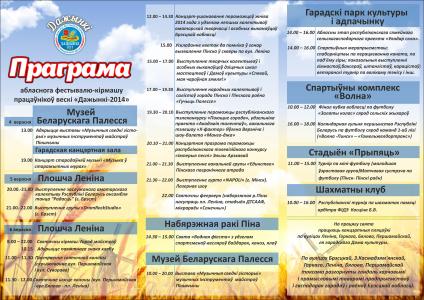 12.00-14.30 – концерт-чествование победителей жатвы-2014 с участием лучших самодеятельных творческих коллективов и исполнителей Брестской области.