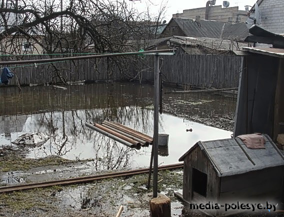 На здымках — вуліца Палеская ў Пінску. Двары жыхароў — падтопленыя. За плотам – тая ж вуліца…