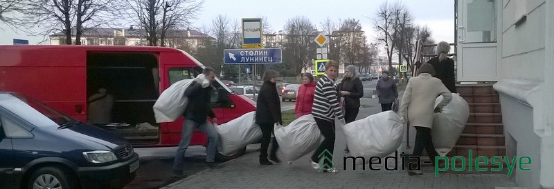 Вот такую картину можно увидеть на улице Брестской в Пинске. Это не доставка новогодних подарков. А что же?