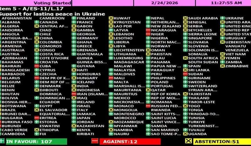 Беларусь была в числе тех, кто вместе с Россией голосовал против резолюции. Также однозначно на российскую сторону встали Буркина-Фасо, Бурунди, Иран, КНДР, Куба, Мали, Нигер, Никарагуа, Судан и Эритрея.