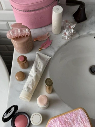 Макияж. Тон — легкий, с едва заметным выравниванием. Живой румянец усиливает ощущение естественности. Бальзам для губ с оттенком заменяет полноценную помаду. Такой вариант легко освежает лицо и держит ритм дня. Можно подчеркнуть брови и добавить немного хайлайтера на переносицу и скулы, чтобы лицо выглядело светлее. Эффект «чистой кожи» — главный ориентир: кажется, будто вы только проснулись и вышли из дома, но при этом выглядите собранно.