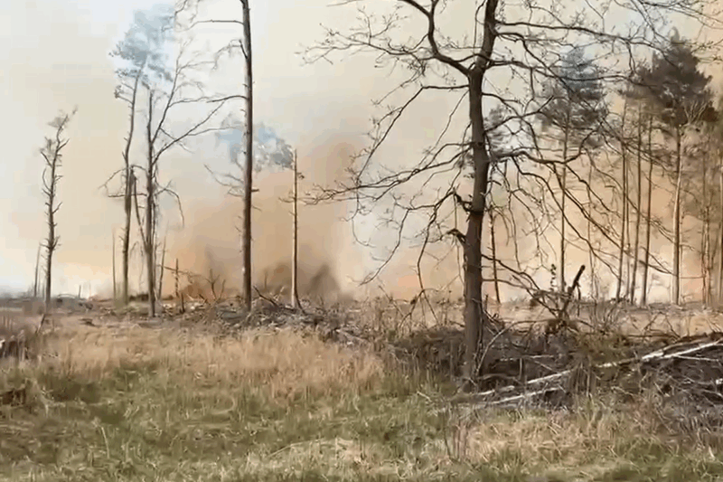 Работники МЧС, лесхоза и сельхозпредприятий ликвидируют лесной пожар возле агрогородка Новый Двор Пинского района.