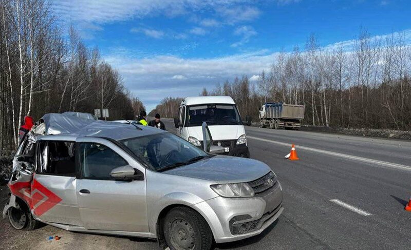 По предварительной информации 25-летний водитель КаМАЗа отвлёкся и совершил столкновение с попутно двигавшимся автомобилем «Лада» под управлением 26-летнего водителя.