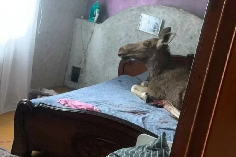 — Этого лося я еще увидел по дороге из магазина, но подумать не мог, что через несколько минут он окажется на моей постели, — рассказывает Сергей. Животное в тот момент находилось в огороде соседа. Хозяин с друзьями его не заметили.
